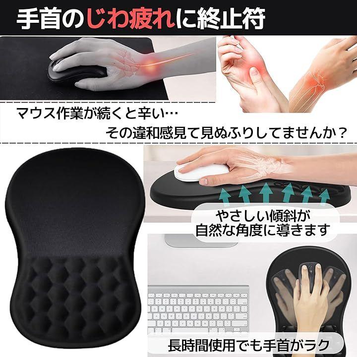 「クリック終わりの“あの疲れ”に終止符」 リストレスト一体型のやさしい傾斜が、手首の一点集中をさけて自然な角度に導きます。