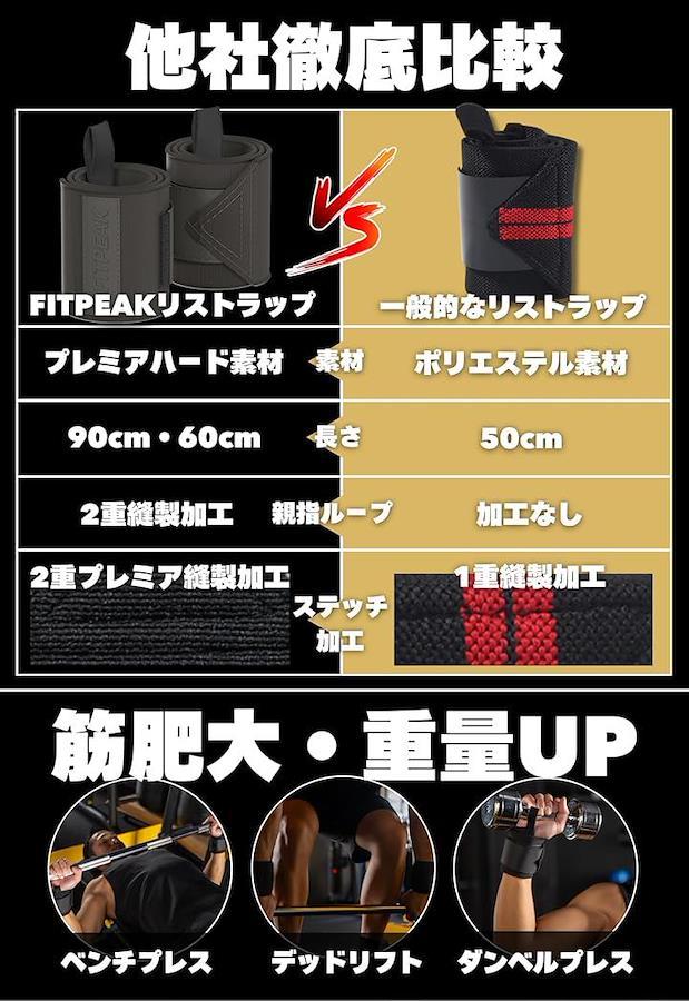 「重量UP・筋肥大効率UP」FITPEAKリストラップは筋トレでしっかり固定することに重きを置いた独自開発の極硬生地を採用. 開発者自身の筋トレの経験から、既存のリストラップのサポート力に不満があり、開発しました。