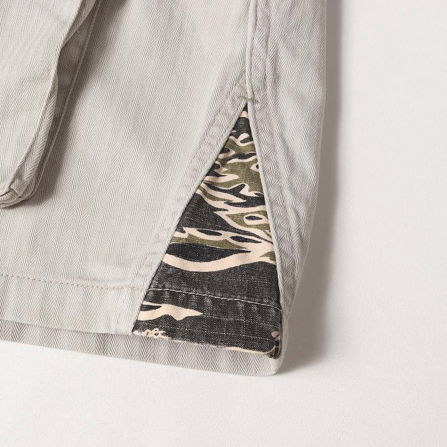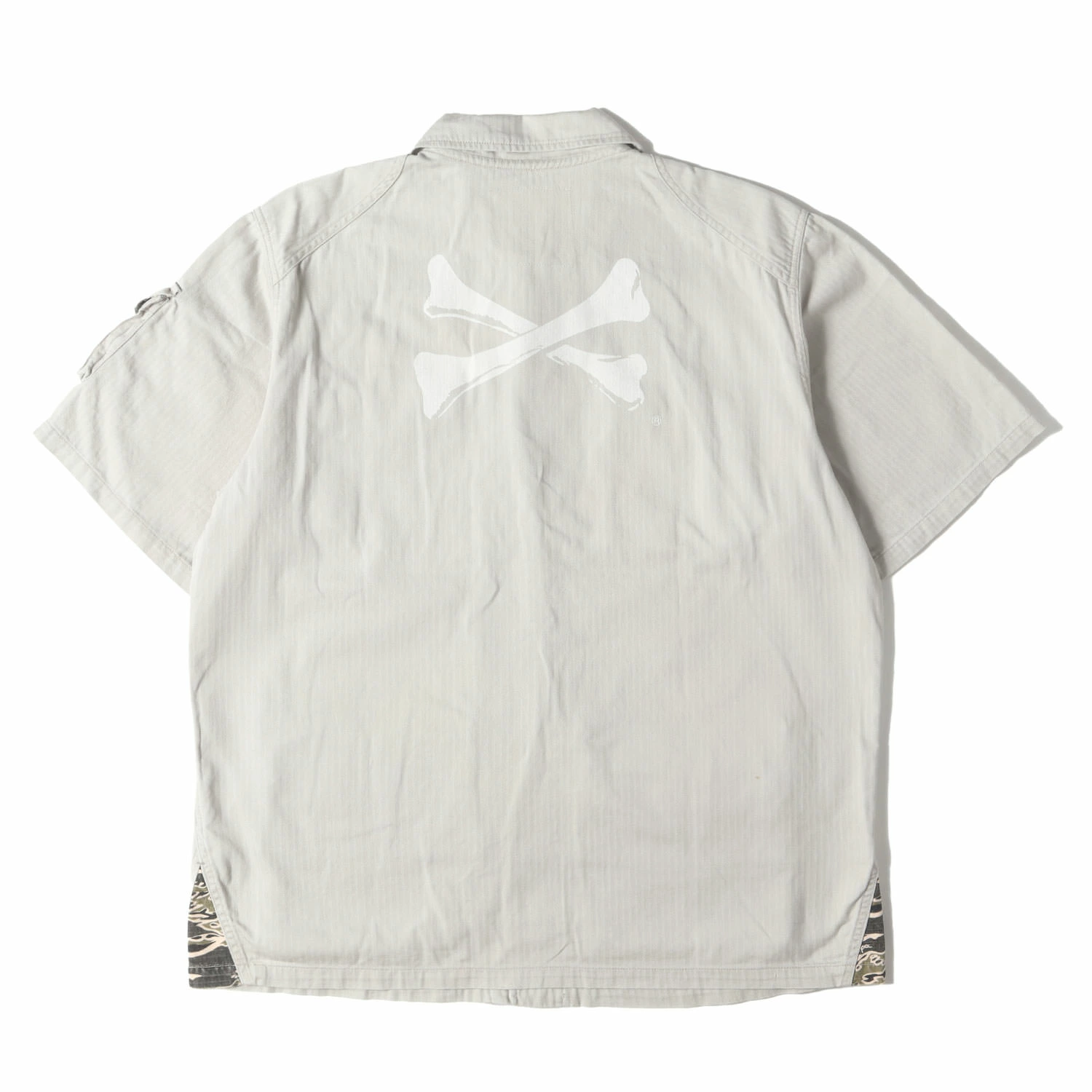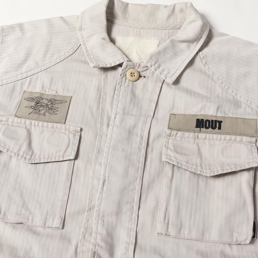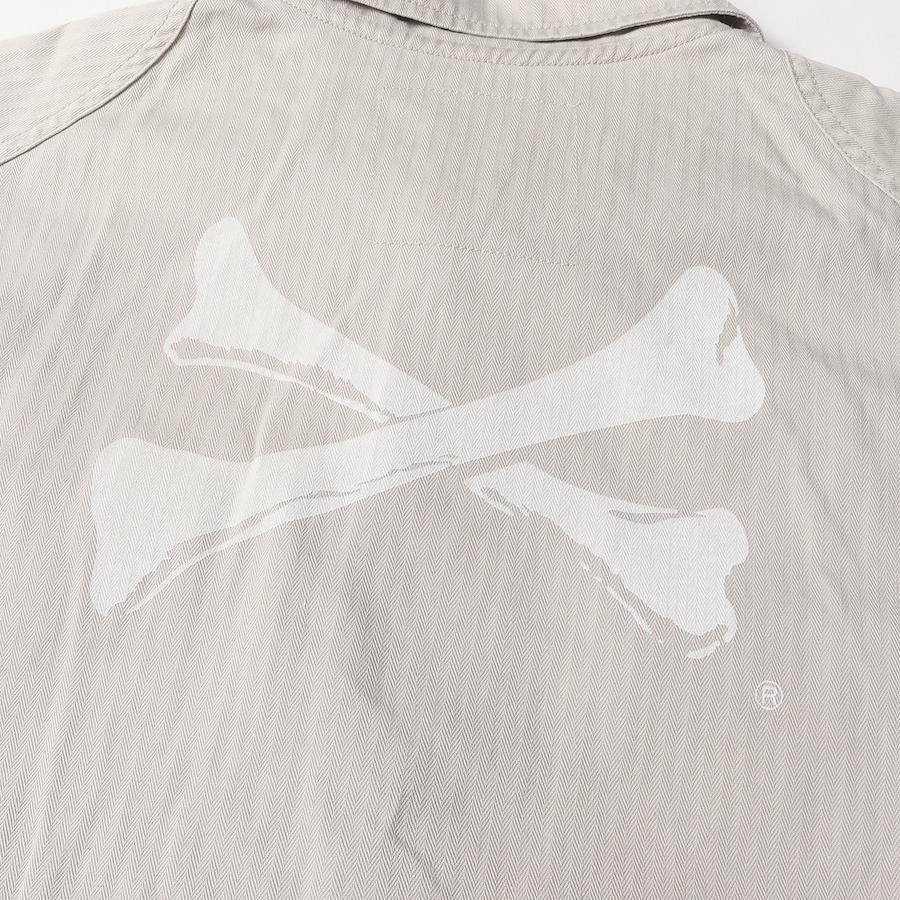 | 商品説明 | ヘリンボーン生地を使用したアーカイブアイテムのミリタリーシャツです。バックには人気モチーフのクロスボーンがデザインされております。 |