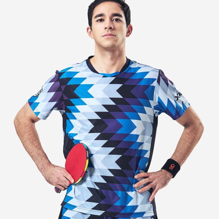 日本卓球協会公認4 月発売ドラゴン高い伸縮性を持つイタリア素材と大胆なグラフィックポリエステル 90% ポリウレタン 10%サイズ : 2XS / XS / S / M / L / XL / 2XLイタリア製の生地で、ジャカードのオープンメッシュスパンデックスで作られています。吸汗機能により、プレー中もドライな状態を保ちます。三日月形のジャカード菱形パターンのオープンメッシュスパン素材を使用しています。この生地は、イタリアおよびヨーロッパで最も革新的で重要な繊維生産地域として知られるコモ地方の工場で生産された、最高級の機能性ファブリックです。
