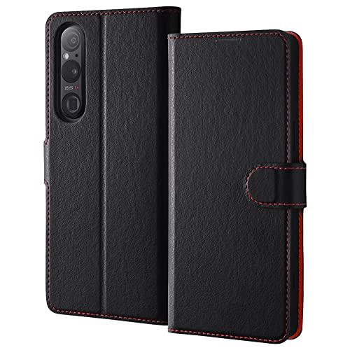 Xperia 1 V 耐衝撃 手帳型レザーケース シンプル マグネット ブラックレッド RT-RXP1M5ELC1/BR