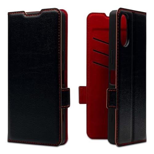 Xperia 5V 薄型手帳ケース サイドマグネット BK×RD カード3枚 ブラック×レッド 7753XP55BSMBKR