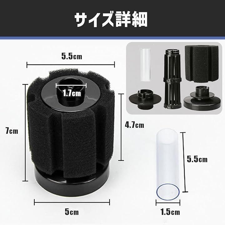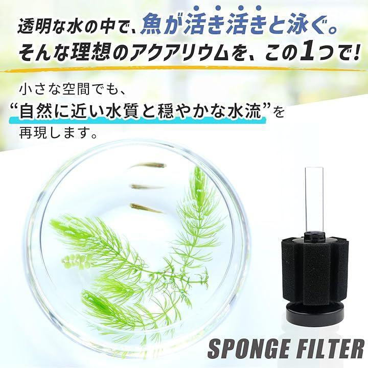 「魚の健康を守る浄化フィルター」 円柱形のスポンジ構造が水槽内の汚れをしっかり吸着し、水質を清潔に保ちます。