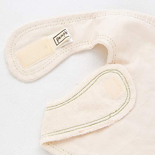 【pompkins BABY オーガニックコットン100%シリーズ】【かえるコレクション】半立体のかえるモチーフが可愛いパイル素材のミニスタイです。 うしろのマジックテープで首まわりの調節ができます。サイズ(約):縦16cm×横18cm