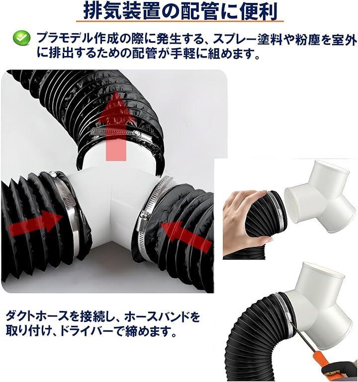 Y型ホース、ダストホース、ホースバンドセットは、自作の排気システムや配管をDIYしたい人におススメ。
