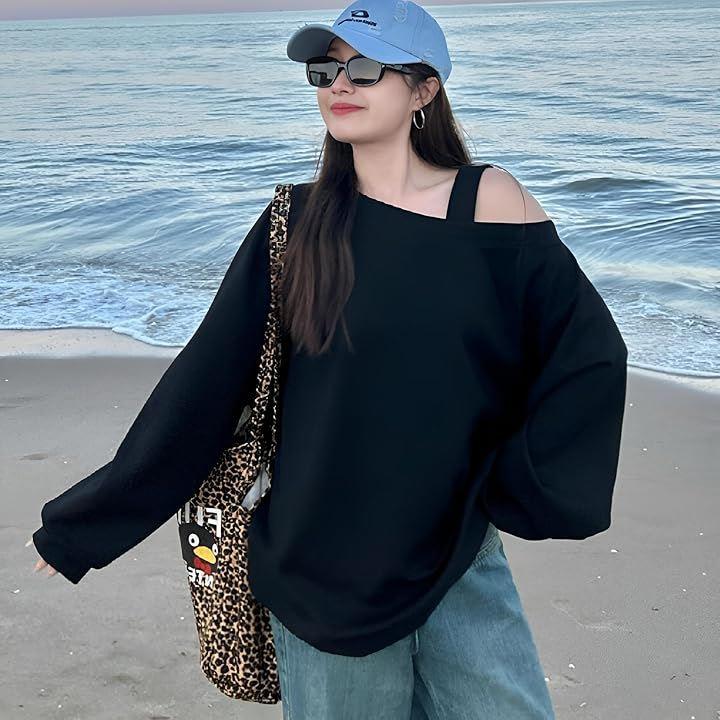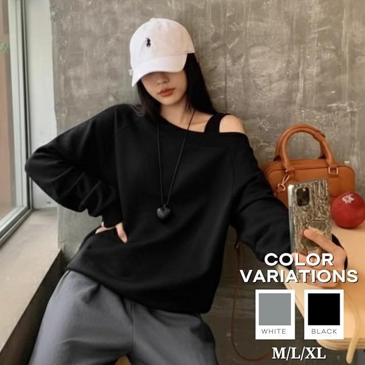 「最後に一言」 抜け感と女性らしさを両立したワンショルダースウェットトップス。