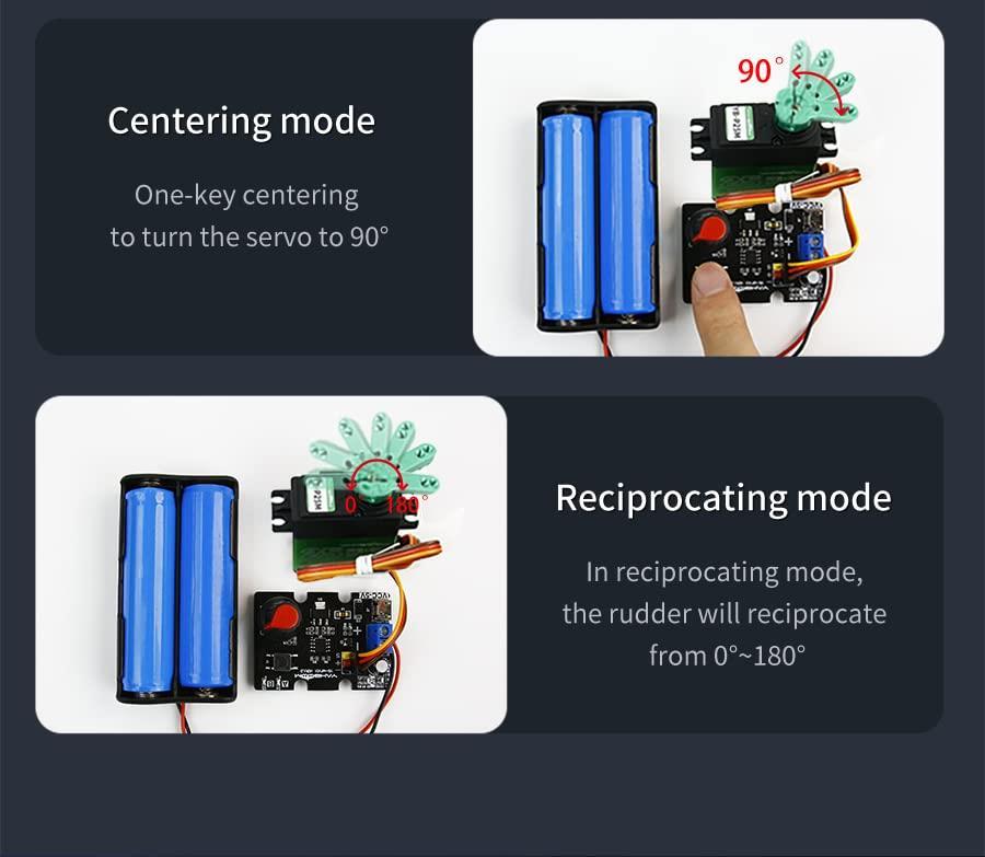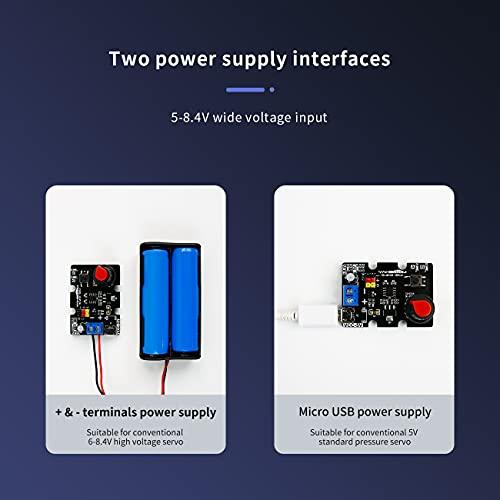 通常1-5営業日で発送:この拡張ボードは、PWMサーボ用に特別に設計されています。 オンボード STC8G1K08A チップは、プログラムを書き込まず、電源に接続することでサーボを制御できます。 1つ目の方法: 調整可能なノブを調節してサーボを制御します。 2つ目の方法: ボタンを押すことでサーボを制御します。 ユーザーは2つの3.7VバッテリーまたはMicro USBデータケーブルで電力を供給でき、便利で持ち運びが簡単です。 メーカーやDIY愛好家はこのサーボコントロールボードを見逃しません。