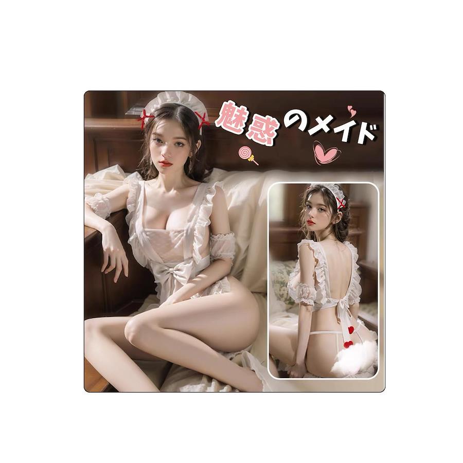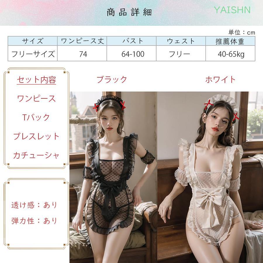 [YAISHN] Sexy Maid Costume, Cosplay, Backless, Extreme, See-Through, Sheer, Erotic, Black, White, Ruffled, Cute Lingerie