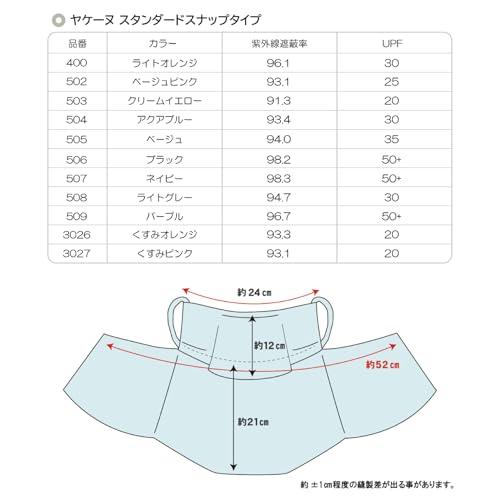 顔を焼きたくない人にはコレ! 【主な仕様】<ヤケーヌ デイリータイプ> ・UVカット率:90%以上・形態安定テープ:なし ・耳紐:本体と同じ生地 地面からの照り返しも広範囲に防ぎ、さらりと快適。UVカットは洗濯をしても効果が持続するから長持ち安心です。 【よくある質問】 Q.装着方法は?A.耳ひもをかけて後ろでマジックテープ(またはスナップボタン)を止めるだけの簡単装着です。 Q.耳ひもが痛くなりませんか?本体と同じ柔らかいストレッチ素材を使用しているので耳が痛くなりにくいです。 Q.息苦しくないですか?鼻と口どちらでも息が吸いやすいように開口部がありますので息苦しくありません。加えて生地も通気性抜群です。Q.洗濯するとUVカット効果が落ちませんか?酸化チタンの効果により紫外線を半永久的にカットするフルダル糸を使用しているので、洗濯をしてもUVカット効果は持続します。日焼け防止専用マスクヤケーヌシリーズ 商品名:ヤケーヌスタンダード生地 生地:日本製ポリエステル87%、キュプラ13% 縫製:ベトナム(日系工場) 特性:高伸縮ストレッチ生地 用途:顔・首の日焼け予防、皮膚治療痕のケア、肌の乾燥予防、過敏症・敏感肌対策 持続効果:洗濯しても効果はずっと変わりません。 主な場面:農作業、屋外作業、ガーデニング、洗濯干し、お散歩屋外スポーツ、テニス、ゴルフ、ウォーキング、ハイキングセーリング、ボート、スキー、スノボ、登山、アウトドア、乗馬 企画・販売:株式会社丸福繊維登録情報取り扱い案内 洗濯機洗い