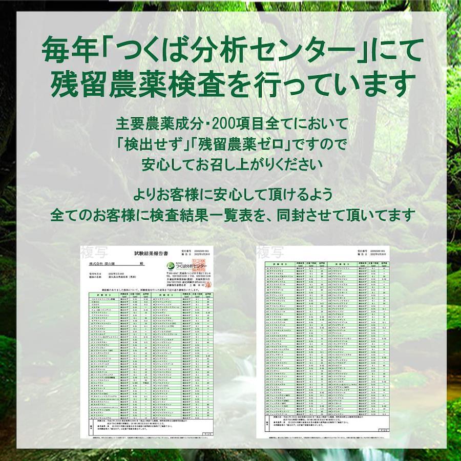 「無農薬なのに有機JASのマークが付いてないのは?」等のご質問を商品レヴューに度々頂いておりますので、簡単ですがご説明させて頂きます。まず、有機=無農薬ではございません。有機のお茶は有機JASの基準をクリアーした食品に与えられる資格で、有機JASには無農薬の規制はありません。現に有機JAS認証の農薬もかなり流通しています。多くの農家が厳しい有機の基準に準じてお茶を栽培していますが、更に完全な無農薬栽培では、ほぼ100%の農家が減収になりますので、有機認証農薬を使用せざるを得ないのが実情であります。また当方のお客様には嗅覚味覚が化学物質等に過敏な方々や、有機のお茶さえ飲めない方々がたくさんおられますので、当方では有機認証農薬も農薬と名の付くものは一切使わず、植物が持っている耐性力等、植物本来の生命力を信じ、自然栽培を行っています。病害虫の被害には自然由来の方法(一例:希釈した海水の散布等)で可能な限り対応していますが、虫の食害は直!減収につながり、生産量は安定せず、品質面でも毎年同じお茶ができたり、できなかったりと、お客様にはご迷惑をおかけする年もございます。しかし、いいことも!・・適度な食害に遭った茶葉は醗酵により風味が良くなることがあります。(一例:中国茶の東方美人) 当方の「完全無農薬自然栽培」は緑茶と醗酵茶の両輪で成り立っております。また、念のため毎年実施している残留農薬検査は今年も200項目すべて「残留農薬検出せず」、ゼロでございますので安心してお召し上がり頂けます。只々、屋久島の植物の生命力と当方をご利用くださいます皆様に、心より感謝致しております。二番茶を主原料とした自然栽培、無農薬・無化学肥料で栽培、製造した粉末緑茶です。一袋120g入りで、袋もチャック付きです。保管も簡単です。ティースプーンに軽く一杯、湯飲みに入れてお湯を注ぐだけですぐに飲めます。お水でも大丈夫です。【免責事項】メーカーによる商品リニューアルに伴いパッケージ(内容量も含む)変更が行われた場合、新パッケージでお届け致します事ご了承願います。