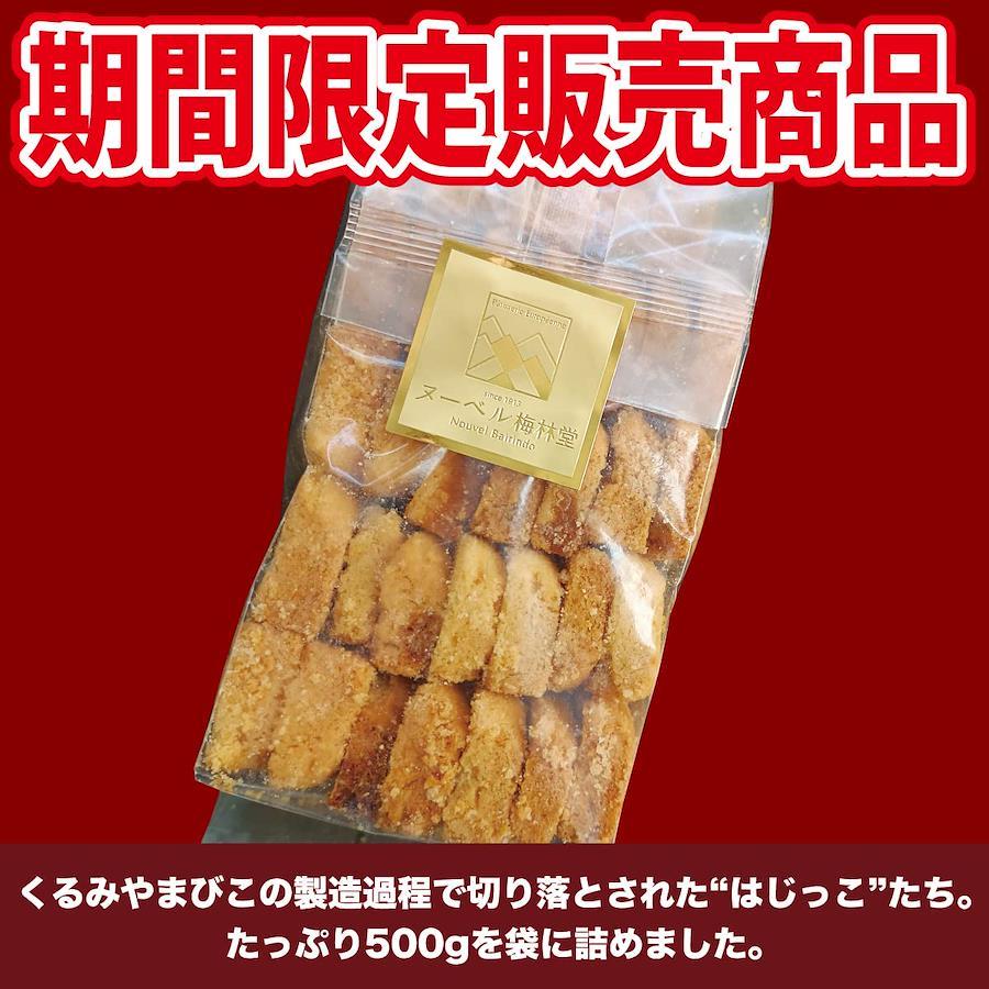 くるみやまびこの製造過程で切り落とされた”はじっこ”たち。たっぷり500gを袋に詰めました。見た目は不揃いですが、美味しさはそのままです。ヌーベル梅林堂は食品ロス削減へ取り組みます。ハーフ・ハーフライト・ロング・ロングライトが一袋に混ざっています。中身は届いてからのお楽しみ!人気商品のためお一人様3個までのご注文とさせていただきます。 ※生産の都合により在庫が変動します。材料に使用しているもの:卵、乳、小麦、大豆、くるみ【重要】メーカーによる商品リニューアルに伴いパッケージ(内容量も含む)変更が行われた場合、新パッケージでお届け致します事ご了承願います。