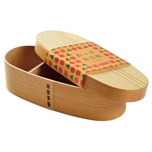 昔なつかしい 曲げワッパの弁当箱です。ご飯を入れると木が余分な水分を吸収し、風味を損なわずにいただけるという昔の人の知恵が生きています。