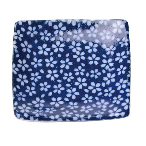 Yamaco Temahima Kobo Petit Feng Shui Small Salt Plate, Square, Indigo and Mountain Cherry Blossom Design, yamaco78458