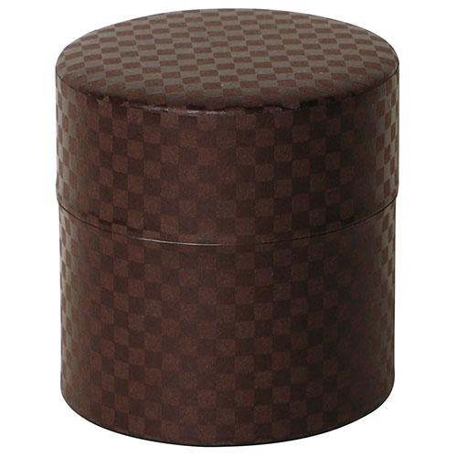 お茶缶にモダンな市松柄のカラー紙を貼って仕上げた容器です。