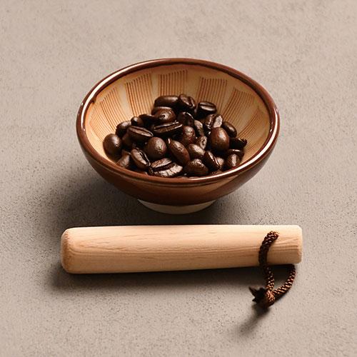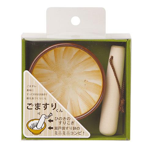ちっちゃくて可愛いサイズの瀬戸焼のすり鉢と、強度にも定評のある、ひのきのすりこぎの本格仕様。