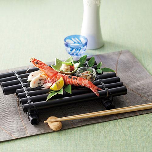 竹の素朴感が情緒を演出する料理皿です。☆炭化させた竹を黒塗りしました。防虫・防カビ効果、耐久性に優れています。