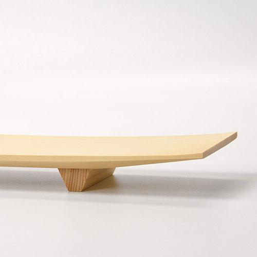 職人技で、なめらかな曲線に仕上げた盛台です。美しく左右に反りあがった形状で料理を演出します。☆左右に伸び上がる羽の様な軽やかなイメージを表現。