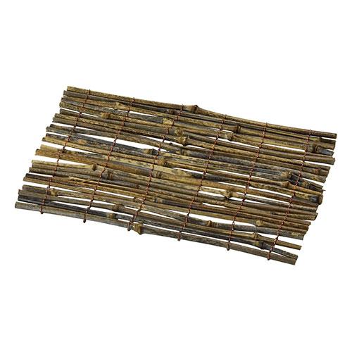 黒竹の太さが同じような部分を使い、銅線で長角に編み上げた、料理すだれです。