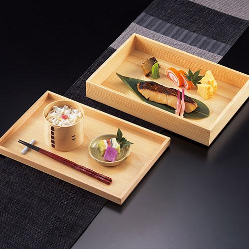 蓋の部分がトレイとして展開できる木目の美しい料理箱です。余裕のある大きさで、料理を十分に演出できます。☆積重ねタイプ。収納にも便利です。
