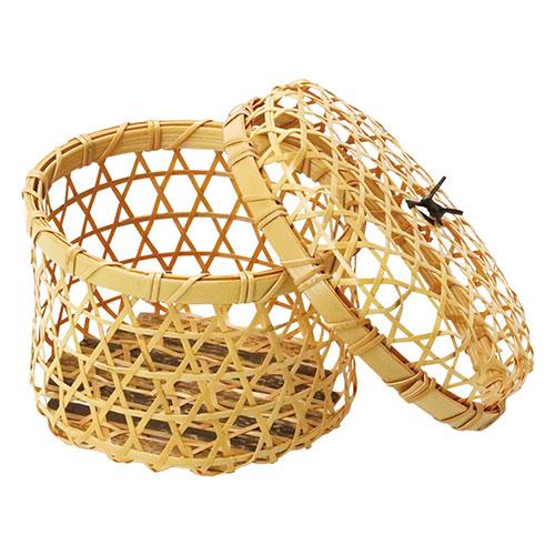 耐久性がある白竹篭に蓋を付け、風情ある料理篭に仕立てました。