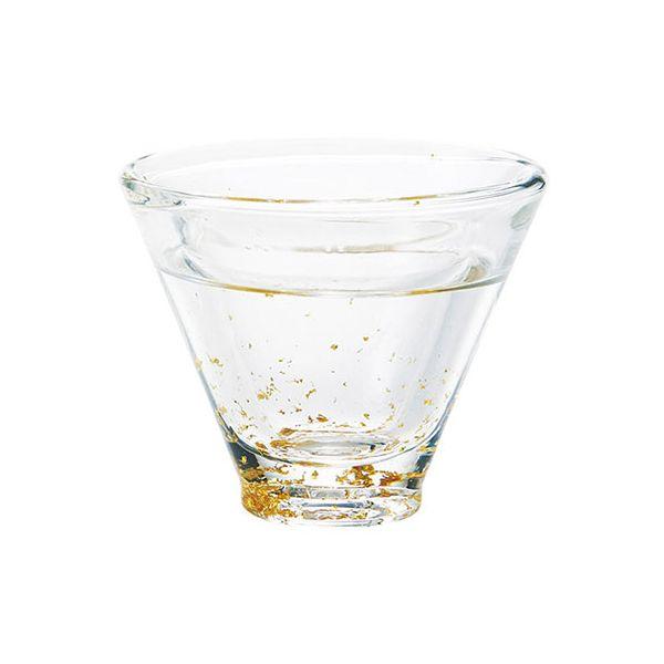 二層ガラスの間に、金箔/銀箔と水を封じ込め、盃を持ち上げるたび、金箔/銀箔が舞う、趣あるガラスの盃です。