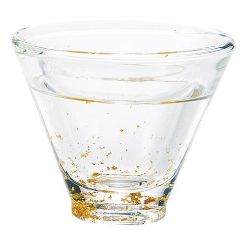 二層ガラスの間に、金箔/銀箔と水を封じ込め、盃を持ち上げるたび、金箔/銀箔が舞う、趣あるガラスの盃です。