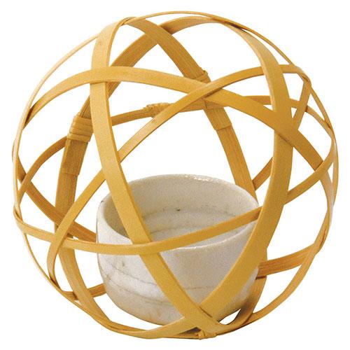 食材を入れた珍味入れを球状に包む、まりも飾り。特別感と趣ある演出を提供できます。☆竹ひごで編んだ、風情あるフォルムです。☆ある程度の折りたたみができます。※陶器は別売です