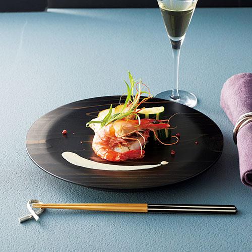料理が引き立つ黒彩色の器になります。内側がくぼんでいるのでソースなどをかけた料理にも最適です。