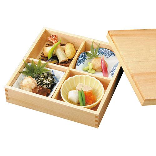 四ツ切の檜の松花堂弁当です。
