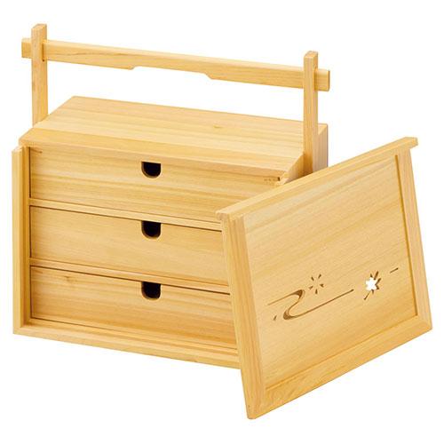 しっかりとした持ち手と引出タイプの箱膳が特長です。