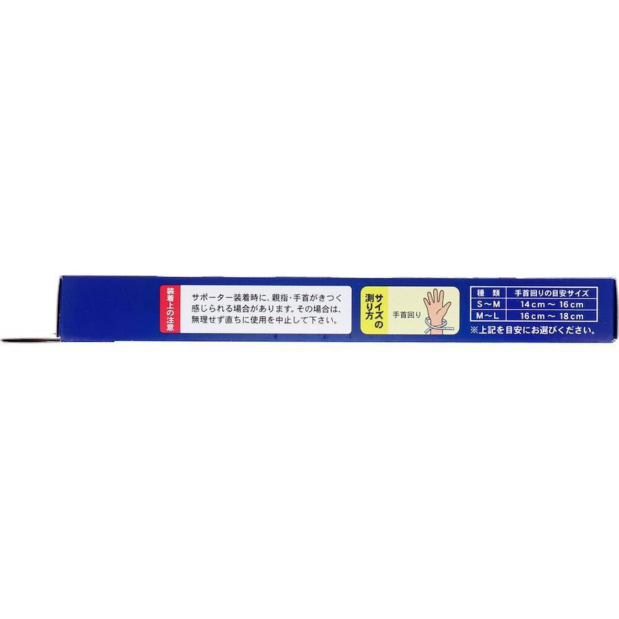 【使用方法】(1)親指・小指側を確認します。(2)手袋をはめる要領で装着。(3)指を入れて完了。※サポーター装着時に、親指・手首がきつく感じられる場合があります。その場合は無理せず直ちに使用を中止してください。