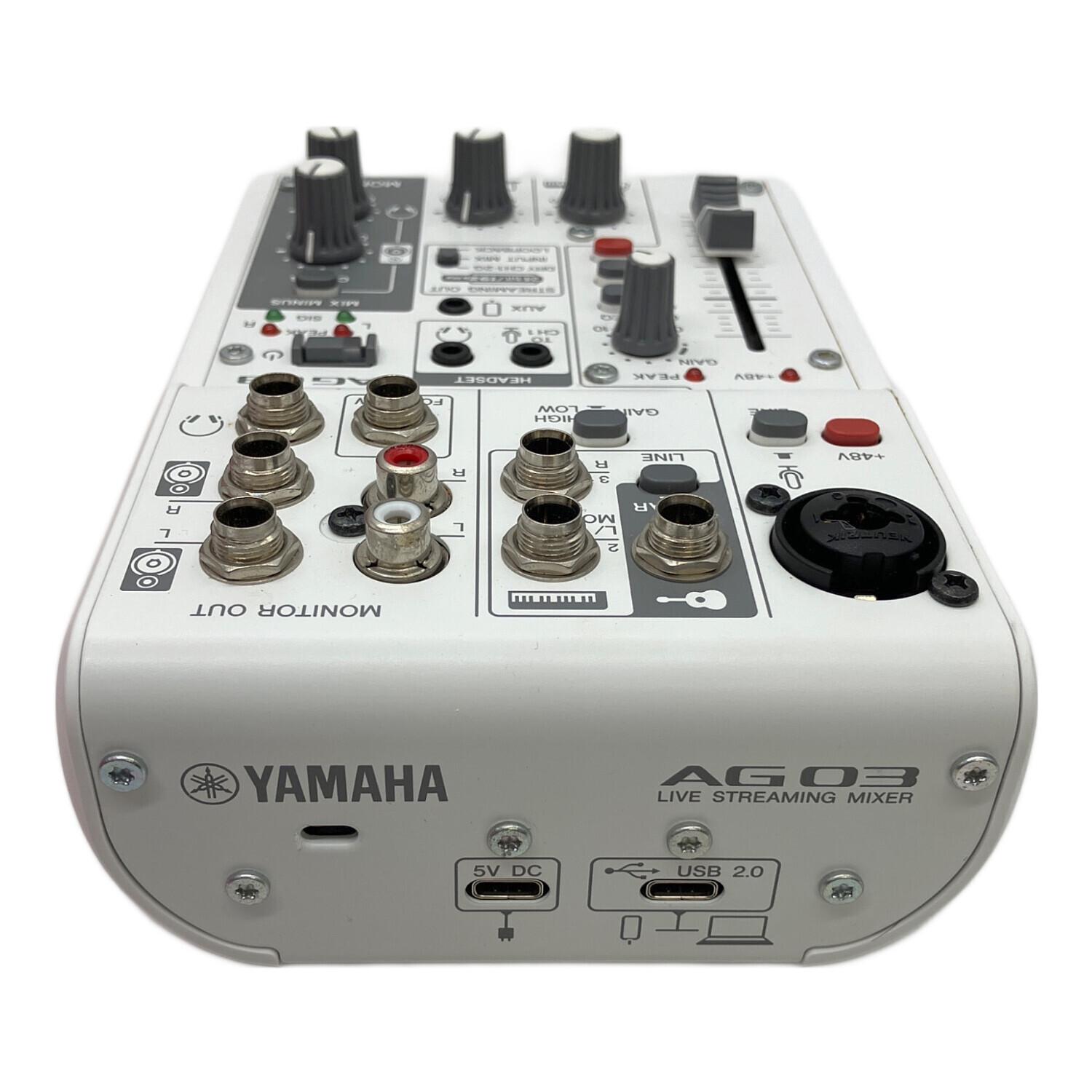 ■商品状態程度B:通常程度の使用感があるお品物こちらの商品は小キズやヨゴレ、若干の使用感などが見受けられます。また店頭にて展示販売を行っている為、記載に無いキズ、ヨゴレなどが見受けられる場合がございます。■商品説明メーカー :YAMAHA (ヤマハ)アイテム名:ライブストリーミングミキサー型番 :AG03MK2シリアルNo:YGDO01406動作確認:済み備考:使用感があるUSEDのお品物です■付属品付属品付き■その他必ず、商品注文される前に店舗情報に記載している注意事項をご確認ください。