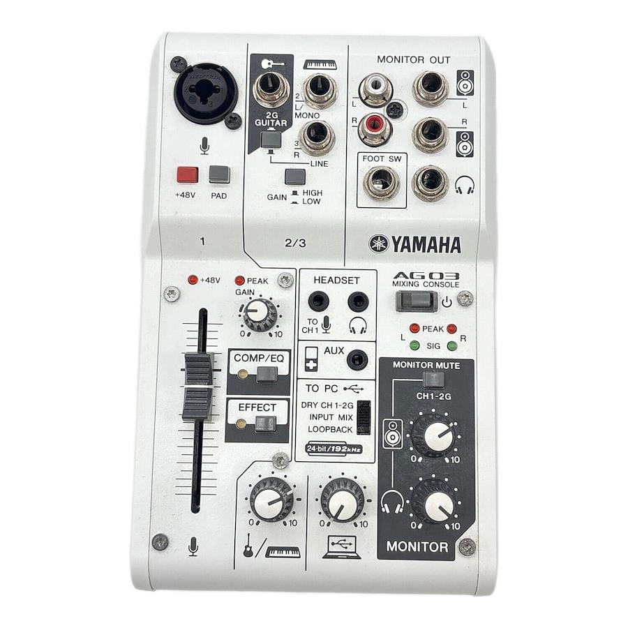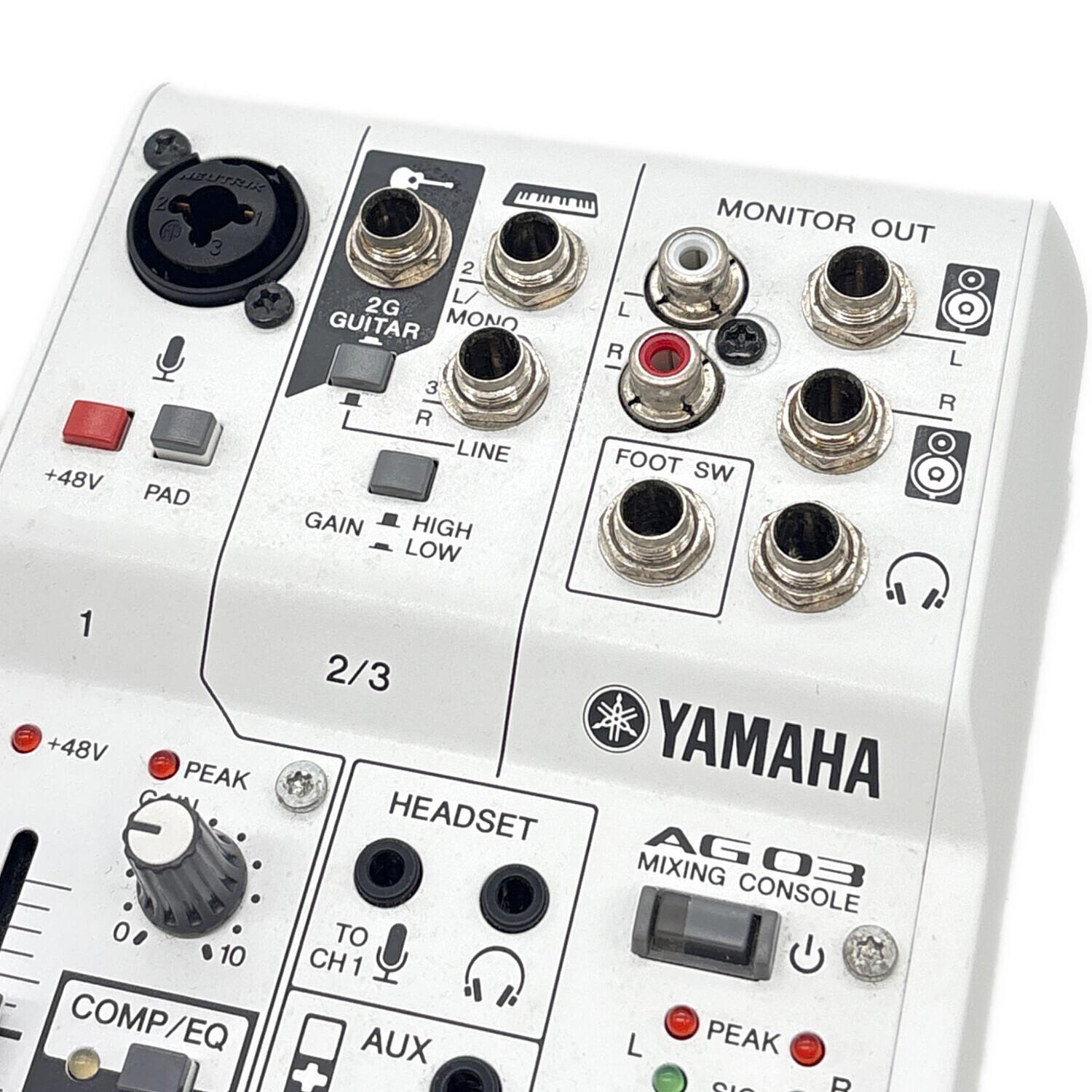 ■商品状態程度B:通常程度の使用感があるお品物こちらの商品は小キズやヨゴレ、若干の使用感などが見受けられます。また店頭にて展示販売を行っている為、記載に無いキズ、ヨゴレなどが見受けられる場合がございます。表面に汚れが見られます。(画像7~9枚目参照)■商品説明メーカー :YAMAHA (ヤマハ)アイテム名:ストリーミングミキサー型番 :AG03■付属品本体のみ■その他必ず、商品注文される前に店舗情報に記載している注意事項をご確認ください。