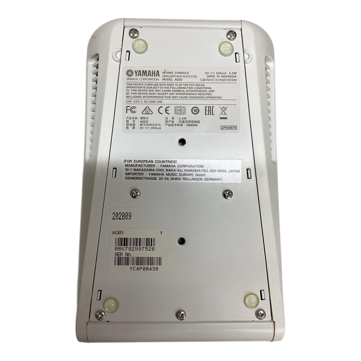 ■商品状態程度B:通常程度の使用感があるお品物こちらの商品は小キズやヨゴレ、若干の使用感などが見受けられます。また店頭にて展示販売を行っている為、記載に無いキズ、ヨゴレなどが見受けられる場合がございます。■商品説明メーカー :YAMAHA (ヤマハ)アイテム名:ウェブキャスティングミキサー型番 :AG03製造国 :インドネシアシリアルNo:21YCAP08438動作確認:動作確認済み■付属品本体のみ■その他必ず、商品注文される前に店舗情報に記載している注意事項をご確認ください。