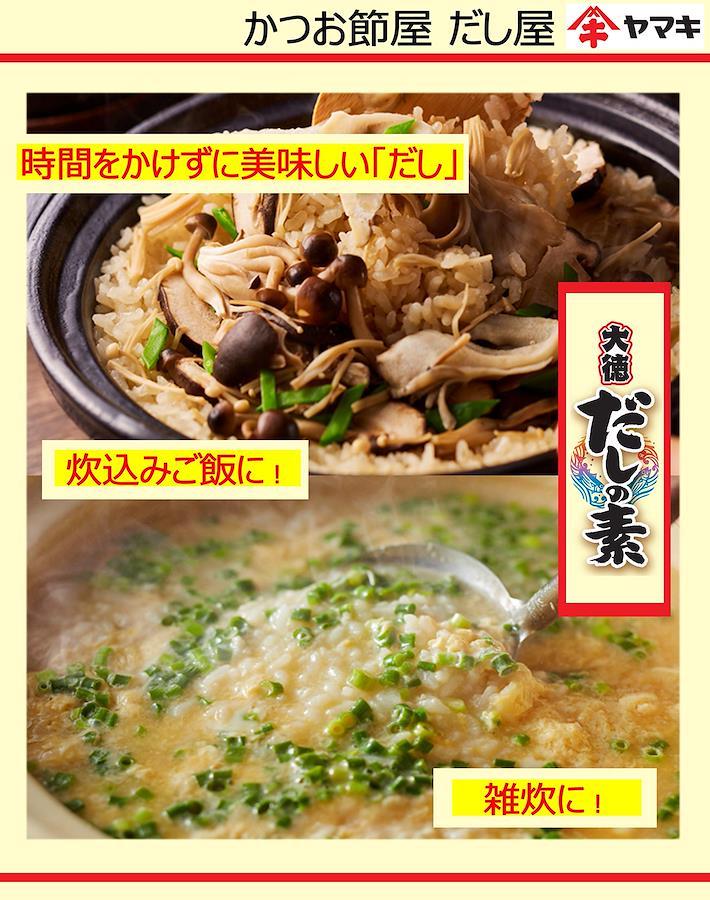 高焙乾かつお節。かつお節の上品な風味と香りを活かした「だし」がお手軽にとれます。ヤマキ「だしの素」は、従来の当社かつお節に比べ、焙乾工程に、より工夫をこらし仕上げたかつお節(高焙乾かつお節)を用いることにより、かつお節本来の上品な風味と香りを活かしたおいしい「だし」がお手軽にとれる調味料です。