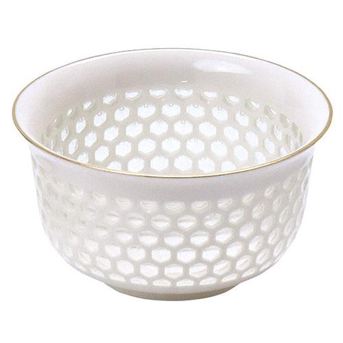 光を通して模様が浮かび上がる「蛍手」陶器。模様の透かしで上品さと高級感を演出した器です。☆前菜や珍味の器に、ちょっとしたスイーツの器に。☆模様がひかりを通すような場所で使用すると、より演出感が増します。☆ホームパーティーのアクセントに、おうちカフェにも。◆蛍手◆透彫(すかしぼり)にしたのち、透明の釉薬をその小穴に充填して焼成する技法。※重量・サイズは若干の個体差があります。