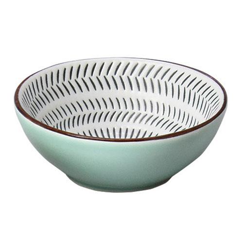飛び鉋(とびかんな)風の柄出しを独自の方法で表現、柄のある内側と、落着きめのカラーを外側に施して組み合わせ独自の雰囲気を作りました。