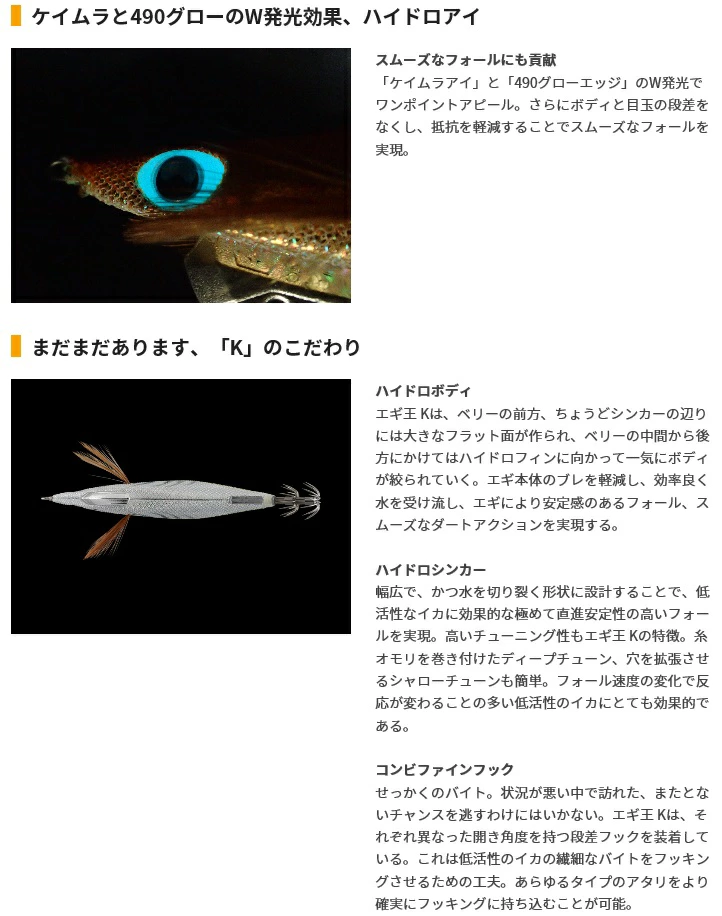 緑と赤のコントラストがイカの視覚を刺激するカラー。