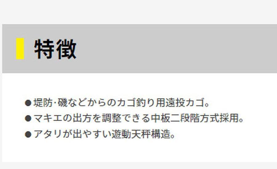 堤防、磯からのカゴ釣り用遠投カゴ。流線径のボディを採用し、抜群の飛距離と、スムーズな沈下でタナを直撃します。