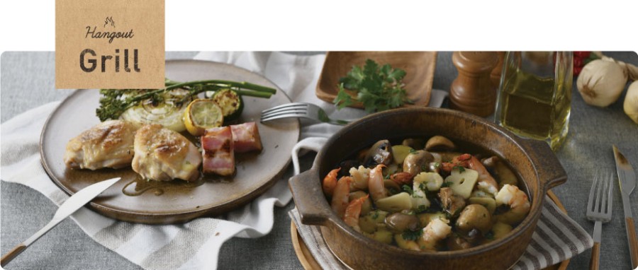 シンプルで雰囲気のあるHangoutの鍋陶器の味わいそのままに直火OKのタフさが魅力。コンロからテーブルへ直行のラクさと、食材の旨みを閉じ込めたジューシーな仕上がり…。アウトドアはもちろん、レストランのようなおもてなし料理の器としてもお勧めです。