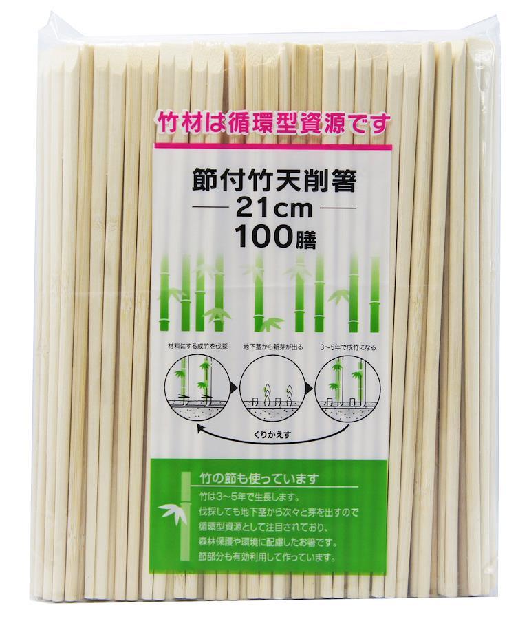 Yamato Bussan disposable chopsticks, 21cm, knotted bamboo, top-cut chopsticks, pack of 100, for commercial use