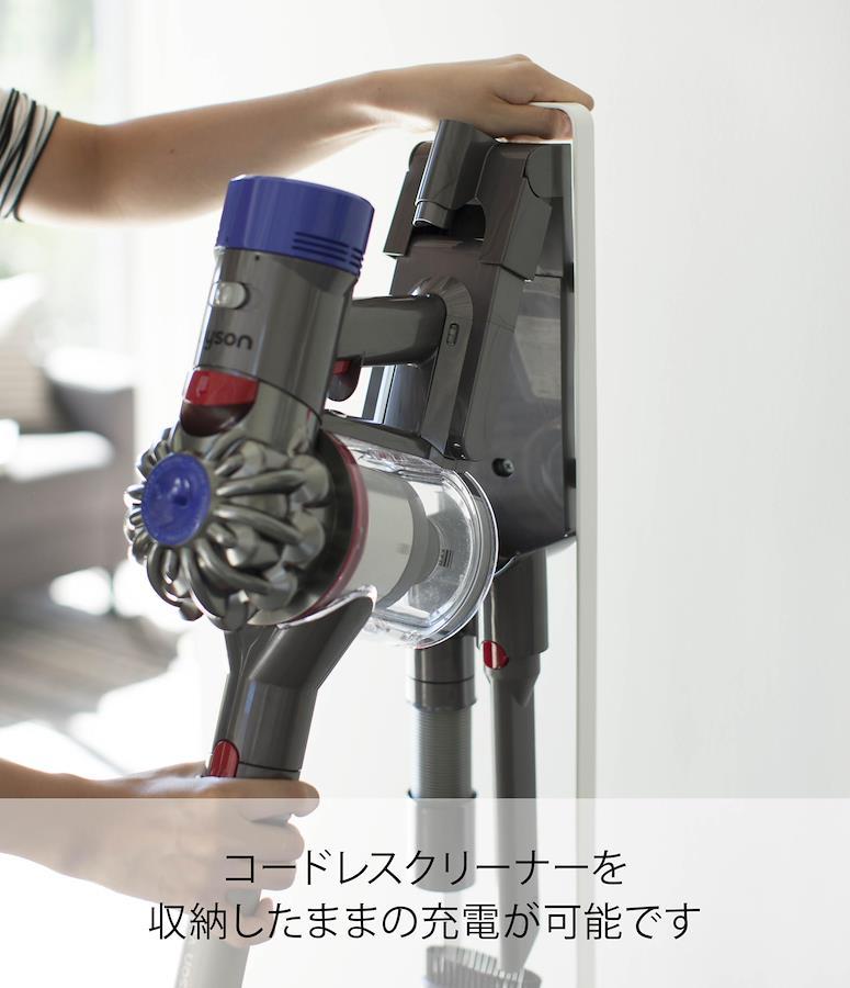 壁に穴を開けずにコードレスクリーナーをスリムに収納できる便利なクリーナースタンド。