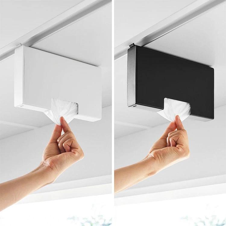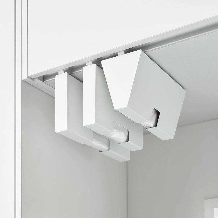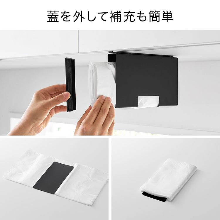 【戸棚下ポリ袋収納ホルダー スリム S】下からサッと取り出せるポリ袋収納ホルダーSサイズです。吊り下げ戸棚に差し込むだけで簡単に設置でき、蓋を開けて入れるだけで補充もスムーズ。付属の仕切り板に巻きつけることで、ポリ袋をスムーズ取り出せます。