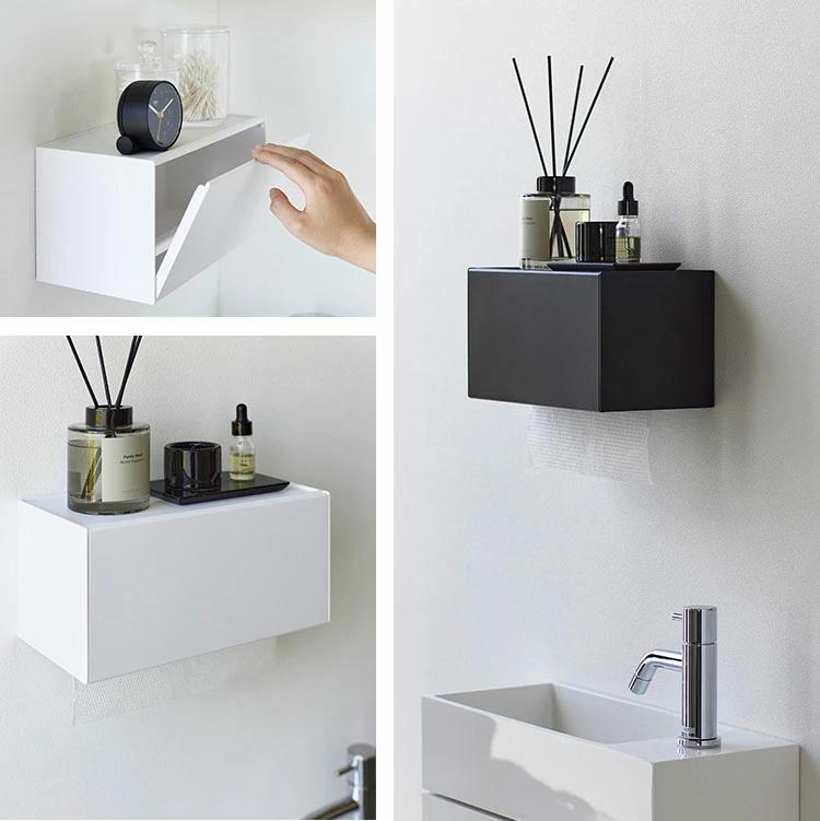 【トレー付きペーパータオルディスペンサー】洗面所やトイレに簡単取り付け!シンプルでスタイリッシュなデザインなので場所を選ばずスマートに設置できるペーパータオルディスペンサーです。上面はトレーになっているので小物やスマートフォンなどの一時置きにも便利。補充の際は前面の蓋を開けるだけ。ペーパータオル・キッチンペーパー・ティッシュペーパーのボックスやソフトタイプにも対応。木ネジの他、壁の穴が目立ちにくい石こうボードピンで、工具や強い力の必要なく簡単に壁に取り付けられます。