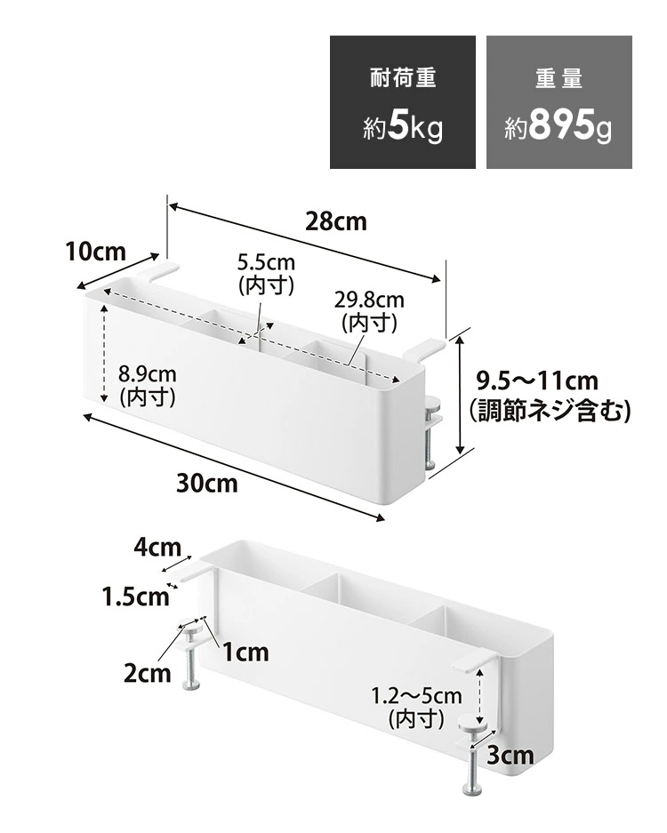 ■サイズ本体:H9.5~11×W30×D10cm(調節ネジ含む)