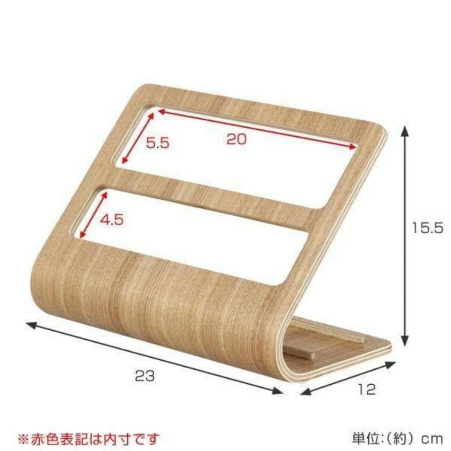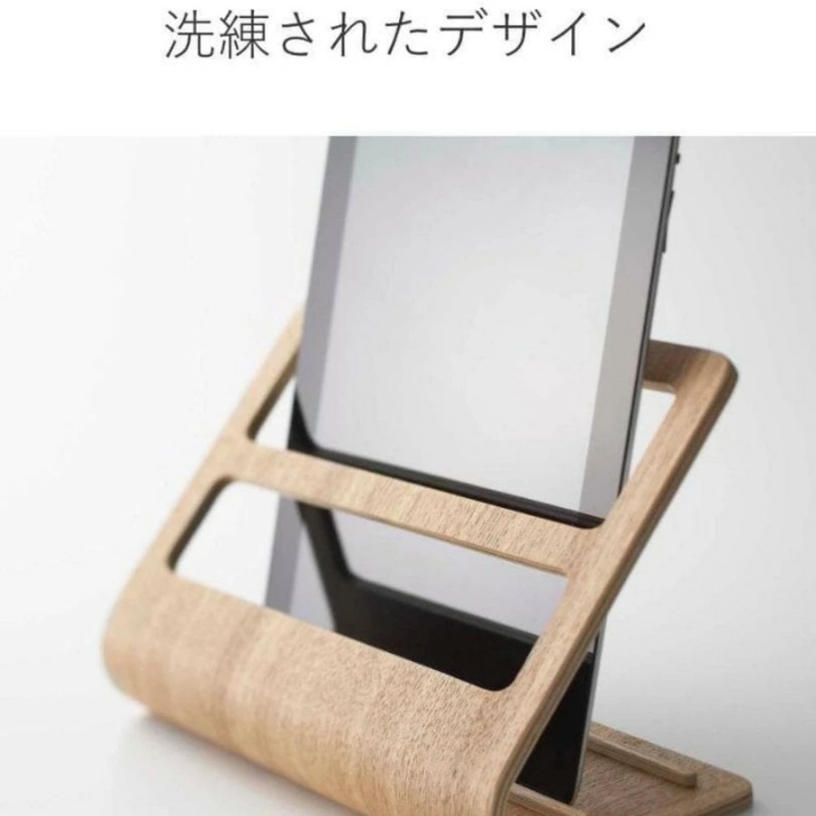 Yamazaki Jitsugyo RIN Tablet & Remote Control Rack - Wooden Storage Rack, Desktop Storage, Small Item Organizer, Remote Control Storage, Tablet Stand - Natural, Simple Interior