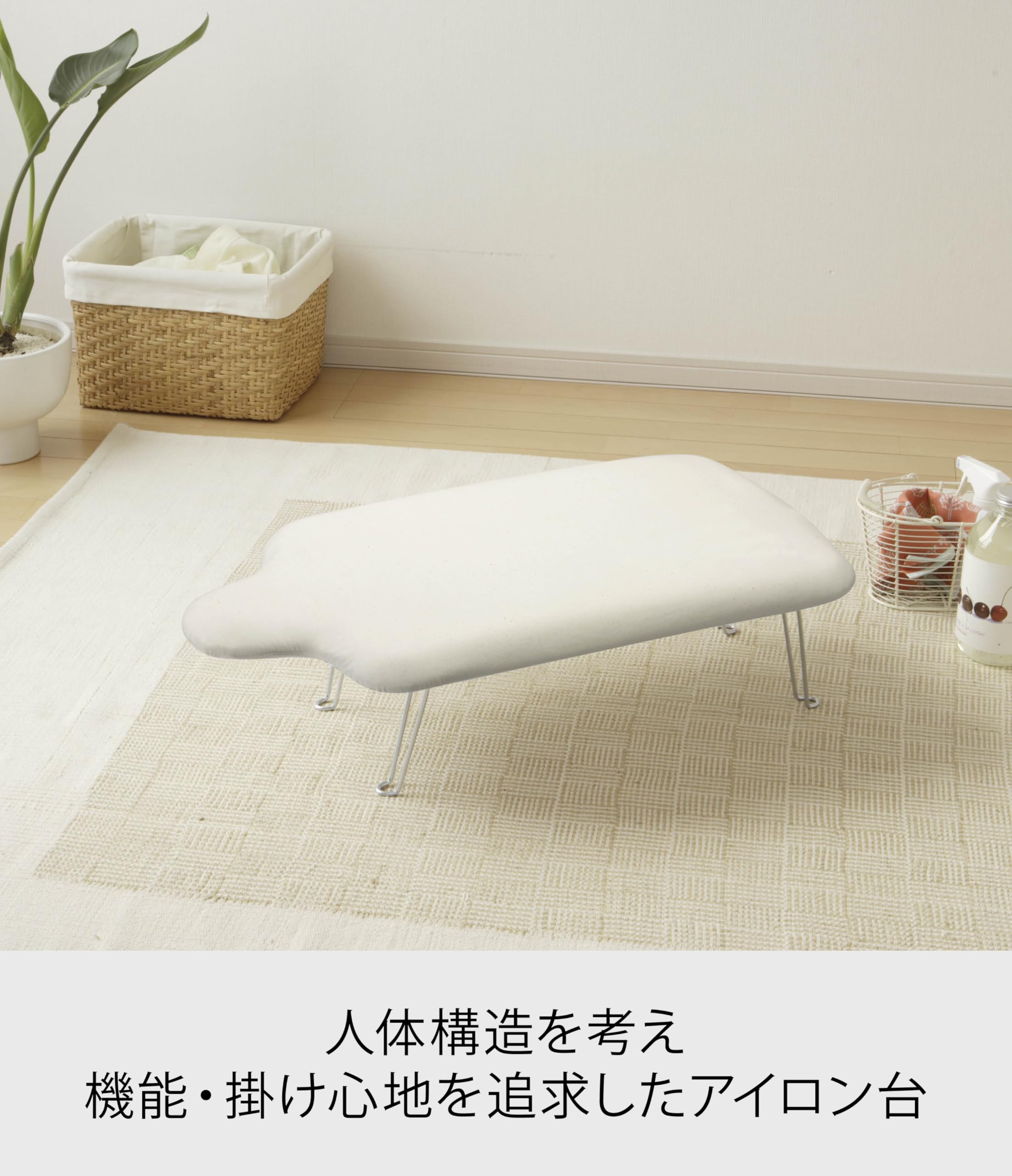 材質 表面布:綿100% クッション材:ポリエステル 天板:スチール(粉体塗装) 脚部・フック:スチール(ユニクロメッキ)