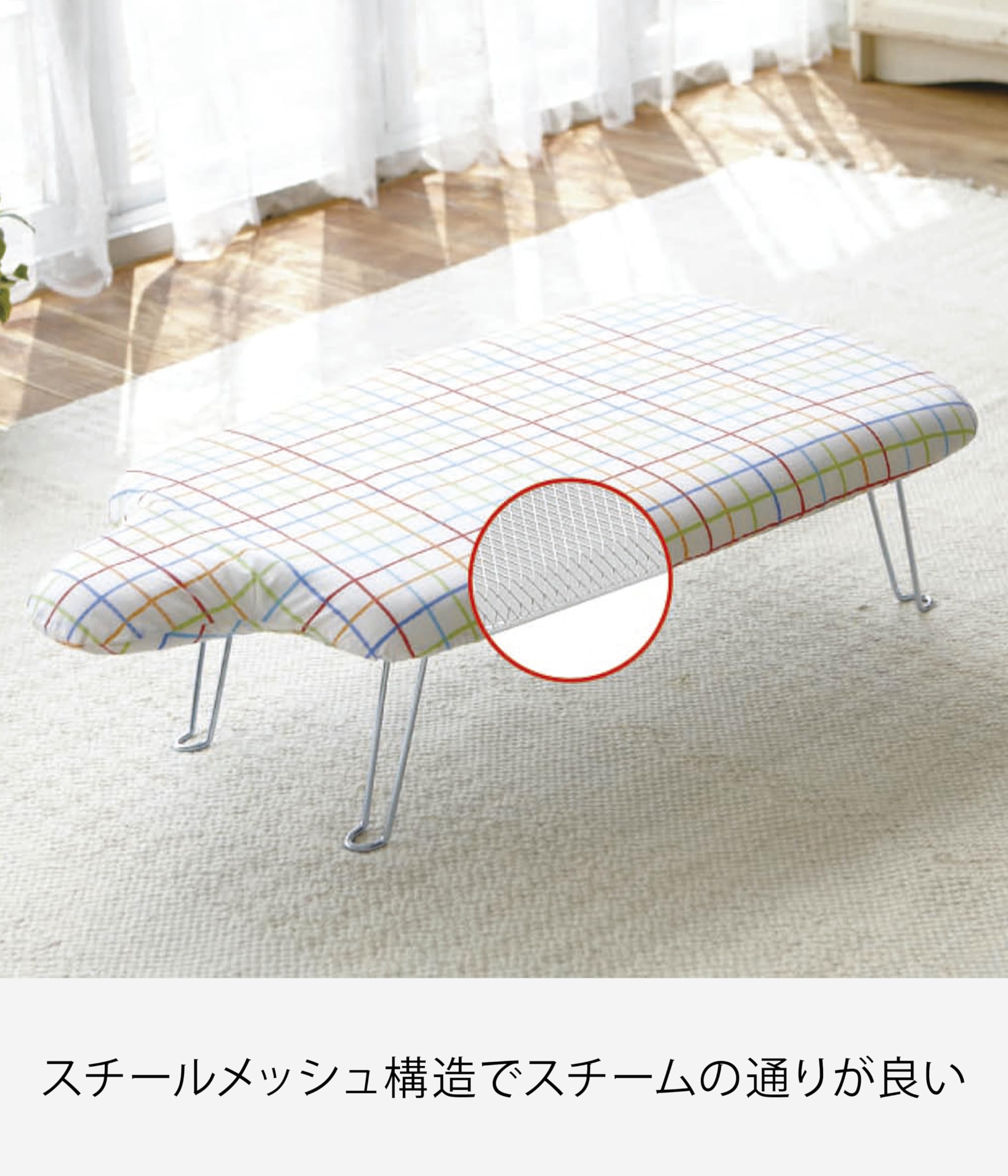 材質 表面布:ポリエステル・綿 クッション材:ポリエステル 天板:スチール(粉体塗装) 脚部・フック:スチール(ユニクロメッキ)