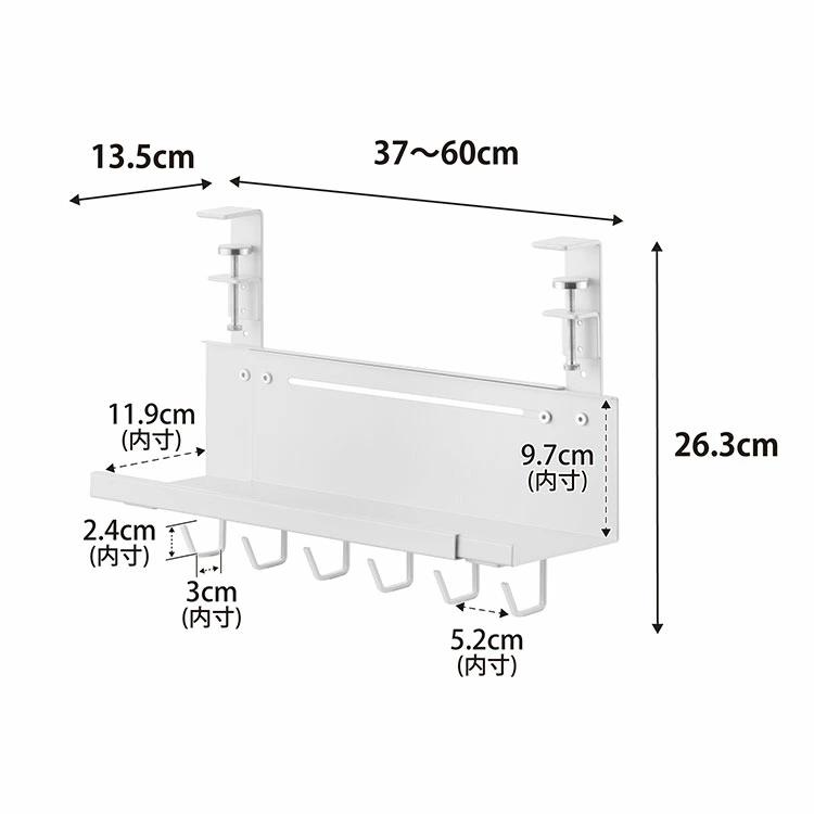 ■サイズ約W37~60×D13.5×H26.3cm[ 内寸 ]トレー部:W37~60×D11.9×H9.7cmフック部:D3×H2.4cm
