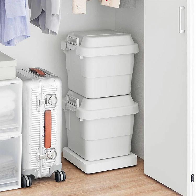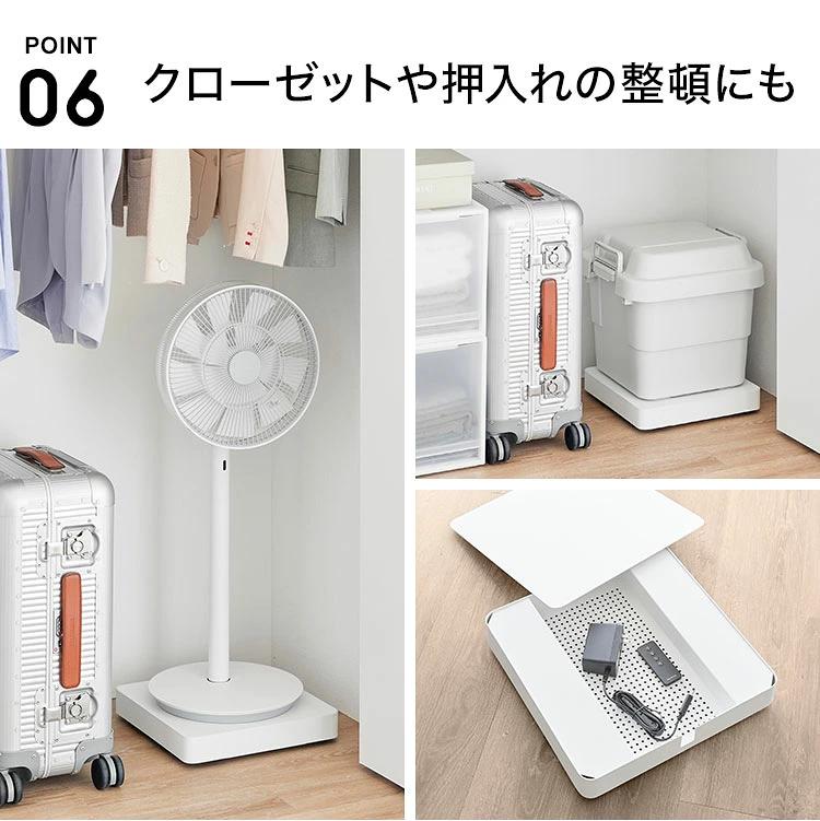 【収納付きスチール台車】ACアダプターや電源タップをすっきり隠せる、スチール製の収納付き台車です。天板下は熱がこもりにくい通気設計で、ほこりが気になるケーブル周りも清潔に保ちながら収納できます。天板を置くだけのシンプル構造で、配線通し口付き。ケーブル類を背面にまとめられるので、見た目もスッキリ。キャスターが目立ちにくいデザインで、扇風機などの季節家電をそのまま押し入れへ移動・収納できます。オフシーズンのアダプターやリモコン類の整理にも便利です。飲料水や重たい保存食品などのストック収納にも活躍します。